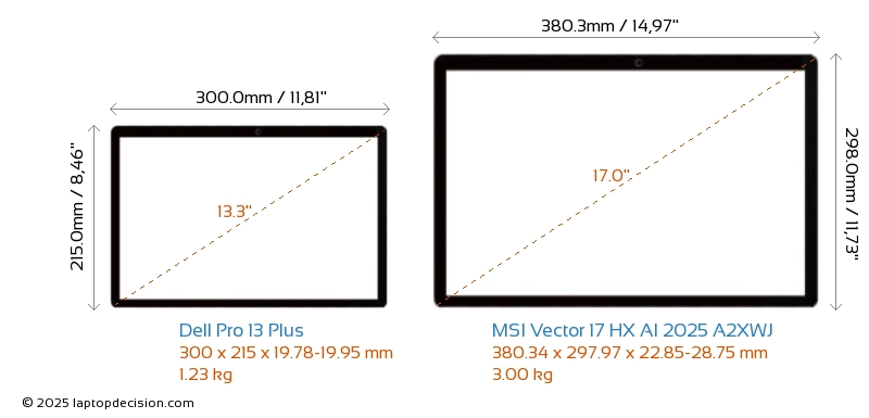 Thunderbolt両方の Pro 13 Plus と Vector 17 HX AI 2025 A2XWJ は Thunderbolt ポートを備えています。 Pro 13 Plus は Thunderbolt 4 を持ち、 Vector 17 HX AI 2025 A2XWJ は Thunderbolt 5 を持っています。