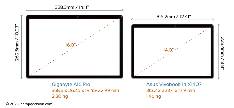 HDMIどちらの A16 Pro と Vivobook 14 X1407 も HDMI ポートを備えています。 A16 Pro は 1x HDMI 2.1 を提供し、 Vivobook 14 X1407 は 1x HDMI 1.4 を提供します。