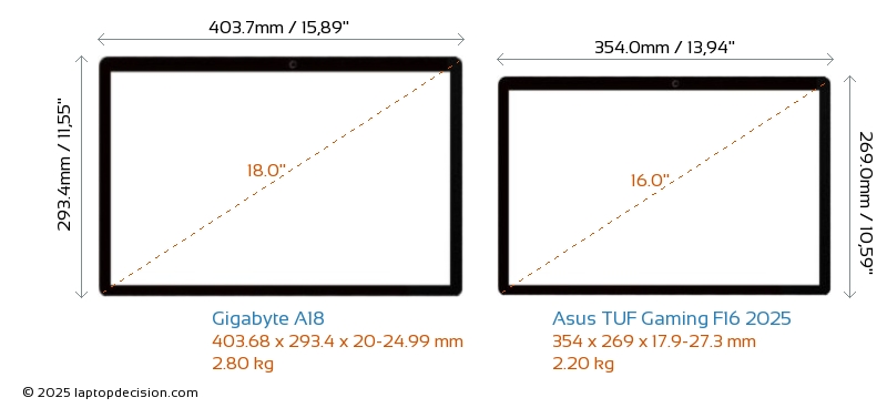 Thunderbolt TUF Gaming F16 2025 は、Thunderbolt 4 ポートを備えています。 A18 には Thunderbolt ポートがありません。