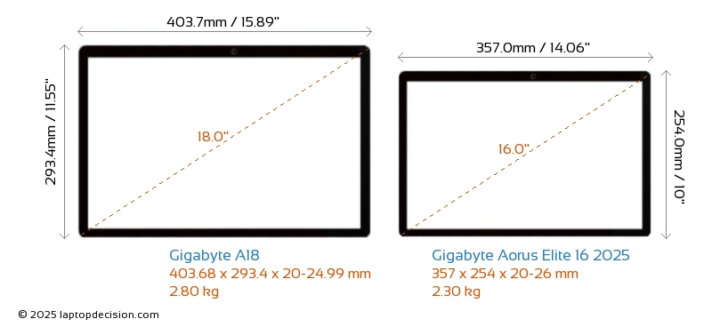 Thunderbolt Aorus Elite 16 2025 は、Thunderbolt 5 ポートを備えています。 A18 には Thunderbolt ポートがありません。