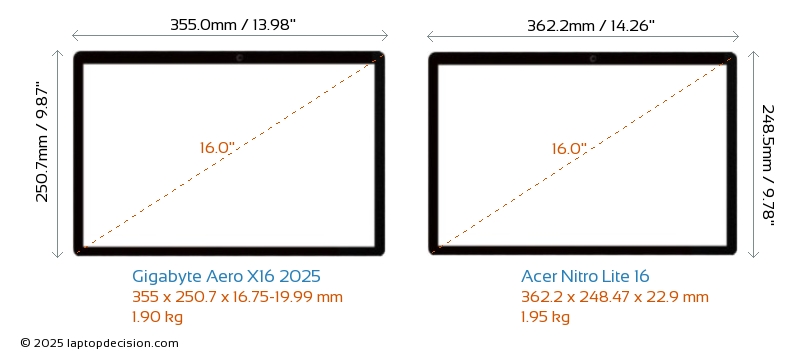 Wifi Aero X16 2025 はより高度な Wi-Fi 規格 v6E を備え、 Nitro Lite 16 (v6) と比べて、より高速で信頼性の高いワイヤレス接続を提供します。
