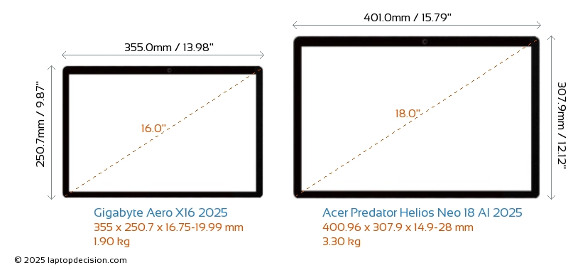 HDMI両方の Aero X16 2025 と Predator Helios Neo 18 AI 2025 は、外部モニターに接続するための HDMI ポート (1x HDMI 2.1) を備えています。
