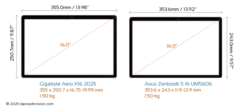 USB両方の Aero X16 2025 と Zenbook S 16 UM5606 は、USB-A ポートを備えています。 Aero X16 2025 は 3x USB 3.2 USB-A ポートを持ち、 Zenbook S 16 UM5606 は 1x USB 3.2 USB-A ポートを持っています。両方の Aero X16 2025 と Zenbook S 16 UM5606 は、USB Type-C ポートを備えています。 Aero X16 2025 は 1x USB 4.0 USB Type-C ポートを持ち、 Zenbook S 16 UM5606 は 2x USB 4.0 USB Type-C ポートを持っています。