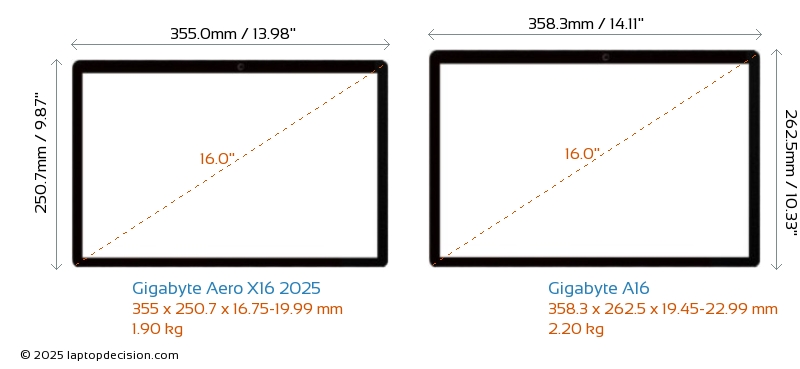 USB両方の Aero X16 2025 と A16 は、3x USB 3.2 の USB-A ポートを備えています。両方の Aero X16 2025 と A16 は、USB Type-C ポートを備えています。 Aero X16 2025 は 1x USB 4.0 USB Type-C ポートを持ち、 A16 は 2x USB 3.2 USB Type-C ポートを持っています。