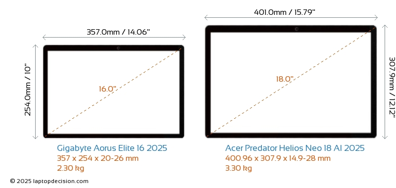 Thunderbolt両方の Aorus Elite 16 2025 と Predator Helios Neo 18 AI 2025 は Thunderbolt ポートを備えています。 Aorus Elite 16 2025 は Thunderbolt 5 を持ち、 Predator Helios Neo 18 AI 2025 は Thunderbolt 4 を持っています。
