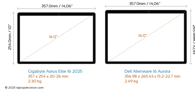 USB両方の Aorus Elite 16 2025 と Alienware 16 Aurora は、2x USB 3.2 の USB-A ポートを備えています。両方の Aorus Elite 16 2025 と Alienware 16 Aurora は、2x USB 4.0 の USB Type-C ポートを備えています。