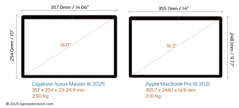 HDMIどちらの Aorus Master 16 2025 と MacBook Pro 16 2021 も HDMI ポートを備えています。 Aorus Master 16 2025 は 1x HDMI 2.1 を提供し、MacBook Pro 16 2021 は 1x HDMI 2.0 を提供します。