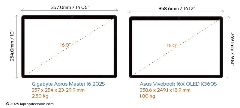 HDMI両方の Aorus Master 16 2025 と Vivobook 16X OLED K3605 は、外部モニターに接続するための HDMI ポート (1x HDMI 2.1) を備えています。