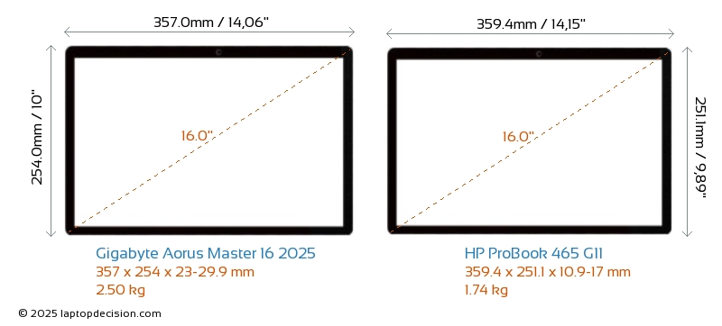 HDMI両方の Aorus Master 16 2025 と ProBook 465 G11 は、外部モニターに接続するための HDMI ポート (1x HDMI 2.1) を備えています。