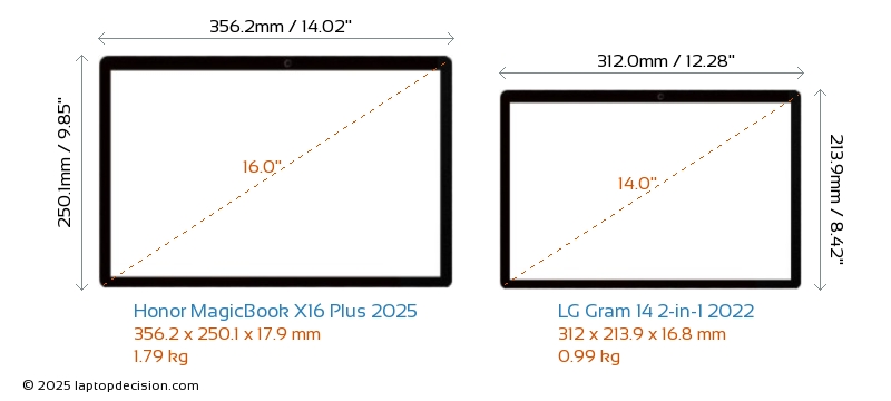 HDMIどちらの MagicBook X16 Plus 2025 と Gram 14 2-in-1 2022 も HDMI ポートを備えています。 MagicBook X16 Plus 2025 は 1x HDMI 1.4 を提供し、Gram 14 2-in-1 2022 は 1x HDMI 2.0 を提供します。