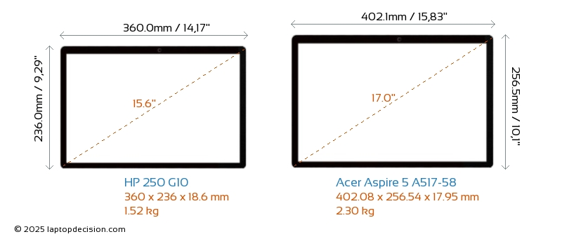 HDMIどちらの 250 G10 と Aspire 5 A517-58 も HDMI ポートを備えています。 250 G10 は 1x HDMI 1.4 を提供し、 Aspire 5 A517-58 は 1x HDMI 2.1 を提供します。