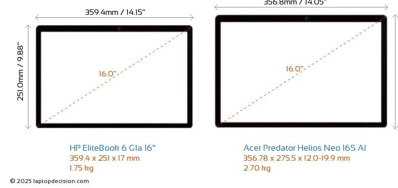 HDMI両方の EliteBook 6 G1a 16" と Predator Helios Neo 16S AI は、外部モニターに接続するための HDMI ポート (1x HDMI 2.1) を備えています。
