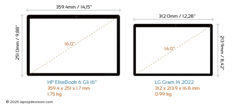 HDMIどちらの EliteBook 6 G1i 16" と Gram 14 2022 も HDMI ポートを備えています。 EliteBook 6 G1i 16" は 1x HDMI 2.1 を提供し、Gram 14 2022 は 1x HDMI 2.0 を提供します。