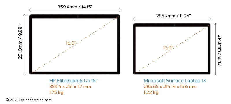 USB両方の EliteBook 6 G1i 16" と Surface Laptop 13 は、USB-A ポートを備えています。 EliteBook 6 G1i 16" は 2x USB 3.2 USB-A ポートを持ち、 Surface Laptop 13 は 1x USB 3.2 USB-A ポートを持っています。両方の EliteBook 6 G1i 16" と Surface Laptop 13 は、2x USB 4.0 の USB Type-C ポートを備えています。