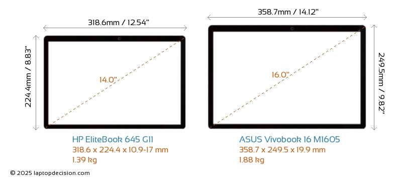 HDMIどちらの EliteBook 645 G11 と Vivobook 16 M1605 も HDMI ポートを備えています。 EliteBook 645 G11 は 1x HDMI 2.1 を提供し、 Vivobook 16 M1605 は 1x HDMI 1.4 を提供します。