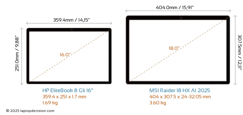 HDMI両方の EliteBook 8 G1i 16" と Raider 18 HX AI 2025 は、外部モニターに接続するための HDMI ポート (1x HDMI 2.1) を備えています。