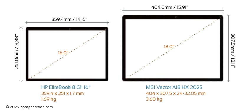 HDMI両方の EliteBook 8 G1i 16" と Vector A18 HX 2025 は、外部モニターに接続するための HDMI ポート (1x HDMI 2.1) を備えています。