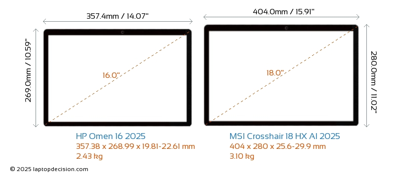 HDMI両方の Omen 16 2025 と Crosshair 18 HX AI 2025 は、外部モニターに接続するための HDMI ポート (1x HDMI 2.1) を備えています。