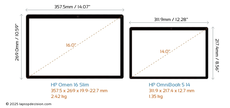HDMI Omen 16 Slim は、外部モニターに接続するための HDMI ポート (1x HDMI 2.1) を備えています。 OmniBook 5 14 には HDMI ポートがありません。