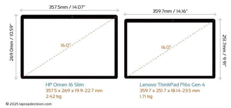 HDMI両方の Omen 16 Slim と ThinkPad P16s Gen 4 は、外部モニターに接続するための HDMI ポート (1x HDMI 2.1) を備えています。