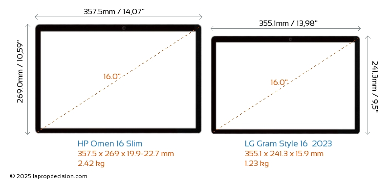HDMI Omen 16 Slim は、外部モニターに接続するための HDMI ポート (1x HDMI 2.1) を備えています。 Gram Style 16 2023 には HDMI ポートがありません。