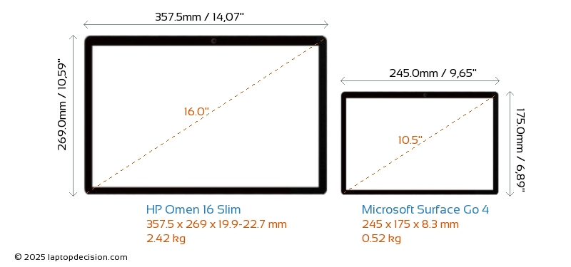 HDMI Omen 16 Slim は、外部モニターに接続するための HDMI ポート (1x HDMI 2.1) を備えています。 Surface Go 4 には HDMI ポートがありません。