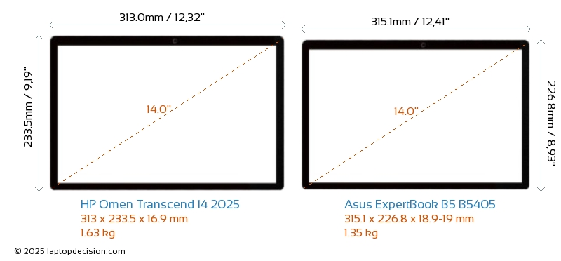 HDMI両方の Omen Transcend 14 2025 と ExpertBook B5 B5405 は、外部モニターに接続するための HDMI ポート (1x HDMI 2.1) を備えています。