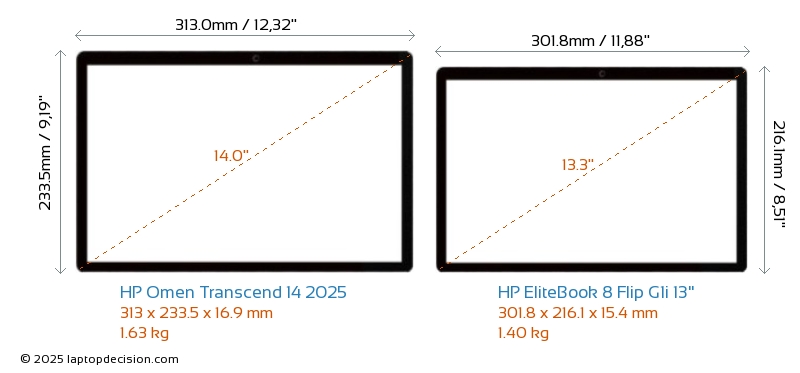 HDMI両方の Omen Transcend 14 2025 と EliteBook 8 Flip G1i 13" は、外部モニターに接続するための HDMI ポート (1x HDMI 2.1) を備えています。