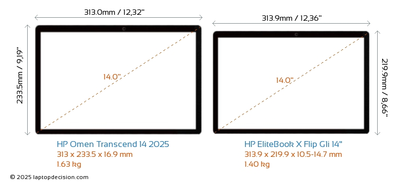 HDMI両方の Omen Transcend 14 2025 と EliteBook X Flip G1i 14" は、外部モニターに接続するための HDMI ポート (1x HDMI 2.1) を備えています。