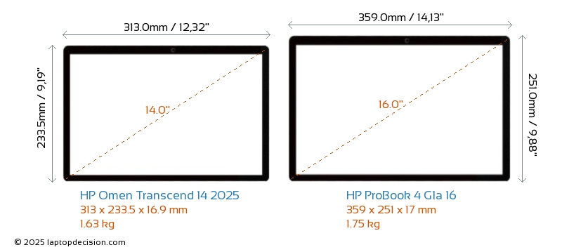 Thunderbolt Omen Transcend 14 2025 は、Thunderbolt 4 ポートを備えています。 ProBook 4 G1a 16 には Thunderbolt ポートがありません。