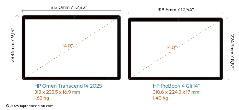 HDMI両方の Omen Transcend 14 2025 と ProBook 4 G1i 14" は、外部モニターに接続するための HDMI ポート (1x HDMI 2.1) を備えています。