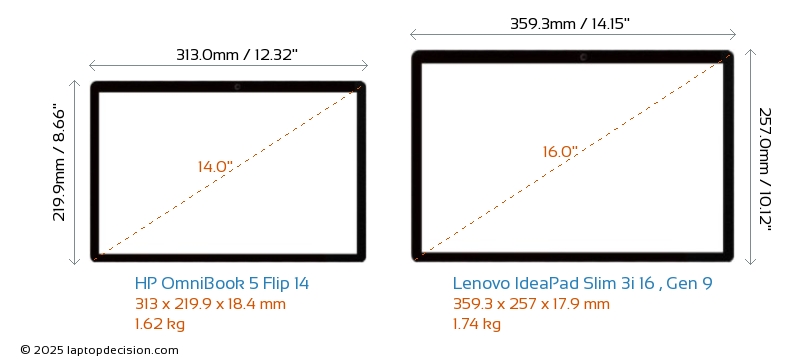HDMIどちらの OmniBook 5 Flip 14 と IdeaPad Slim 3i 16 , Gen 9 も HDMI ポートを備えています。 OmniBook 5 Flip 14 は 1x HDMI 2.1 を提供し、 IdeaPad Slim 3i 16 , Gen 9 は 1x HDMI 1.4 を提供します。