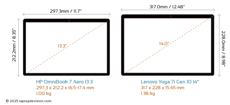 HDMIどちらの OmniBook 7 Aero 13.3 と Yoga 7i Gen 10 14" も HDMI ポートを備えています。 OmniBook 7 Aero 13.3 は 1x HDMI 2.1 を提供し、 Yoga 7i Gen 10 14" は 1x HDMI 1.4 を提供します。