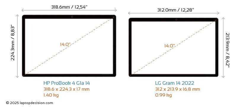 HDMIどちらの ProBook 4 G1a 14 と Gram 14 2022 も HDMI ポートを備えています。 ProBook 4 G1a 14 は 1x HDMI 2.1 を提供し、Gram 14 2022 は 1x HDMI 2.0 を提供します。