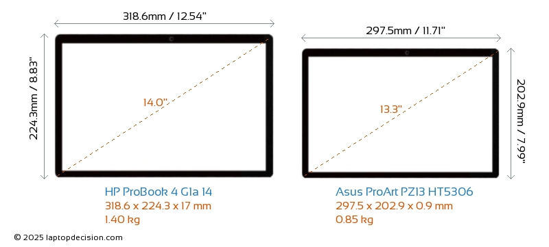 HDMI ProBook 4 G1a 14 は、外部モニターに接続するための HDMI ポート (1x HDMI 2.1) を備えています。 ProArt PZ13 HT5306 には HDMI ポートがありません。