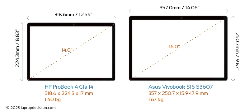 HDMI両方の ProBook 4 G1a 14 と Vivobook S16 S3607 は、外部モニターに接続するための HDMI ポート (1x HDMI 2.1) を備えています。