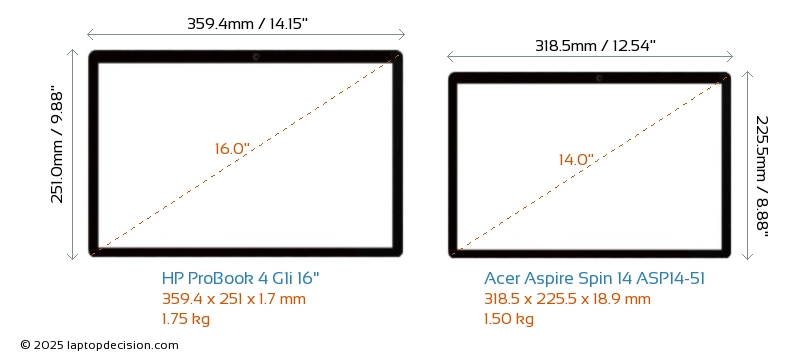 HDMI両方の ProBook 4 G1i 16" と Aspire Spin 14 ASP14-51 は、外部モニターに接続するための HDMI ポート (1x HDMI 2.1) を備えています。