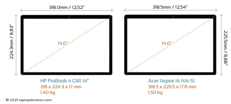 HDMI両方の ProBook 4 G1iR 14" と Aspire 14 A14-51 は、外部モニターに接続するための HDMI ポート (1x HDMI 2.1) を備えています。