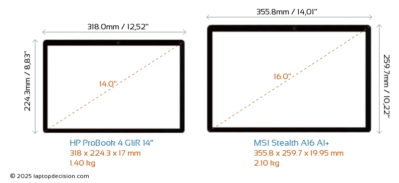HDMI両方の ProBook 4 G1iR 14" と Stealth A16 AI+ 2025 は、外部モニターに接続するための HDMI ポート (1x HDMI 2.1) を備えています。