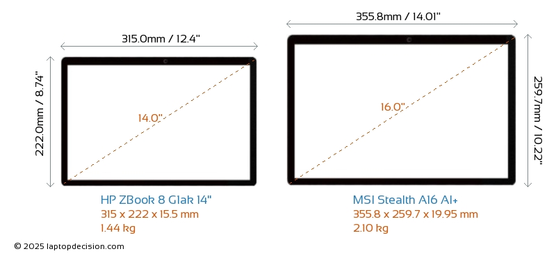 HDMI両方の ZBook 8 G1ak 14" と Stealth A16 AI+ は、外部モニターに接続するための HDMI ポート (1x HDMI 2.1) を備えています。