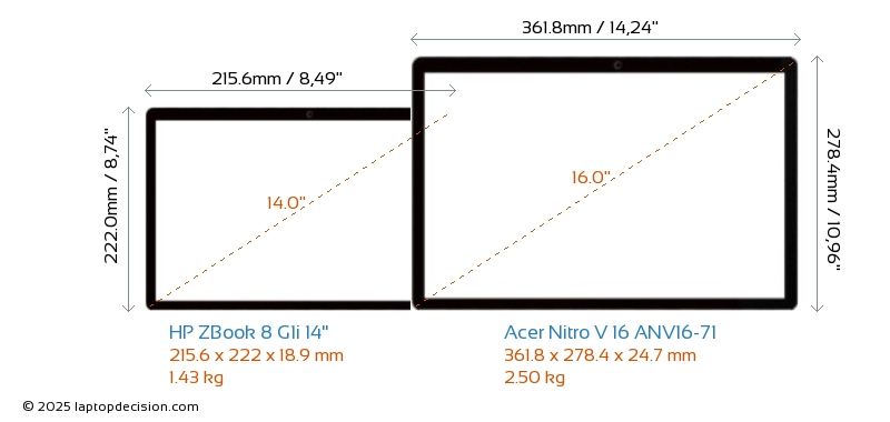 Wifi ZBook 8 G1i 14" はより高度な Wi-Fi 規格 v7 を備え、 Nitro V 16 ANV16-71 (v6) と比べて、より高速で信頼性の高いワイヤレス接続を提供します。