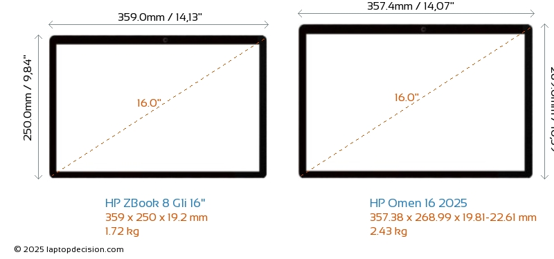 HDMI両方の ZBook 8 G1i 16" と Omen 16 2025 は、外部モニターに接続するための HDMI ポート (1x HDMI 2.1) を備えています。