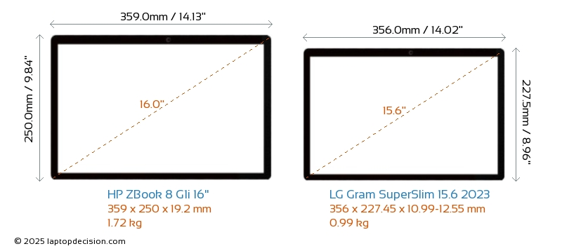 HDMI ZBook 8 G1i 16" は、外部モニターに接続するための HDMI ポート (1x HDMI 2.1) を備えています。 Gram SuperSlim 15.6 2023 には HDMI ポートがありません。