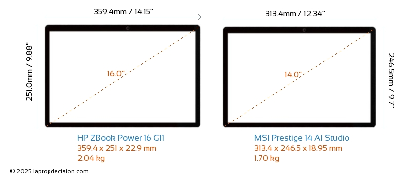 HDMI Prestige 14 AI Studio は、外部モニターに接続するための HDMI ポート (1x HDMI 2.1) を備えています。 ZBook Power 16 G11 には HDMI ポートがありません。