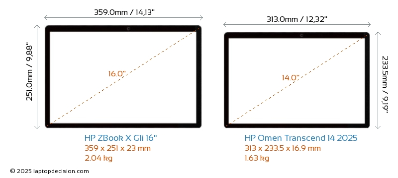 HDMI両方の ZBook X G1i 16" と Omen Transcend 14 2025 は、外部モニターに接続するための HDMI ポート (1x HDMI 2.1) を備えています。