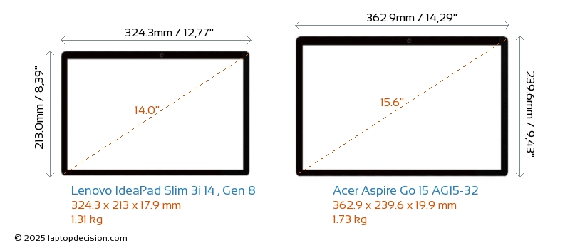 HDMIどちらの IdeaPad Slim 3i 14 , Gen 8 と Aspire Go 15 AG15-32 も HDMI ポートを備えています。 IdeaPad Slim 3i 14 , Gen 8 は 1x HDMI 1.4 を提供し、 Aspire Go 15 AG15-32 は 1x HDMI 2.1 を提供します。