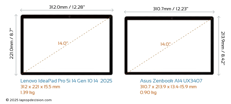 Thunderbolt両方の IdeaPad Pro 5i 14 Gen 10 14 2025 と Zenbook A14 UX3407 は Thunderbolt 4 ポートを備えています。