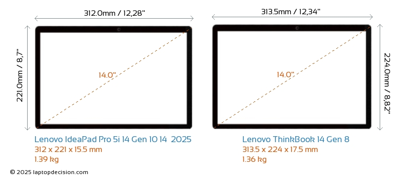 USB両方の IdeaPad Pro 5i 14 Gen 10 14 2025 と ThinkBook 14 Gen 8 は、2x USB 3.2 の USB-A ポートを備えています。両方の IdeaPad Pro 5i 14 Gen 10 14 2025 と ThinkBook 14 Gen 8 は、2x USB 4.0 の USB Type-C ポートを備えています。