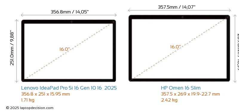 HDMI両方の IdeaPad Pro 5i 16 Gen 10 16 2025 と Omen 16 Slim は、外部モニターに接続するための HDMI ポート (1x HDMI 2.1) を備えています。