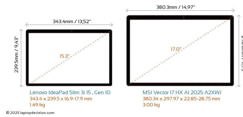 HDMIどちらの IdeaPad Slim 3i 15 , Gen 10 と Vector 17 HX AI 2025 A2XWJ も HDMI ポートを備えています。 IdeaPad Slim 3i 15 , Gen 10 は 1x HDMI 1.4 を提供し、 Vector 17 HX AI 2025 A2XWJ は 1x HDMI 2.1 を提供します。